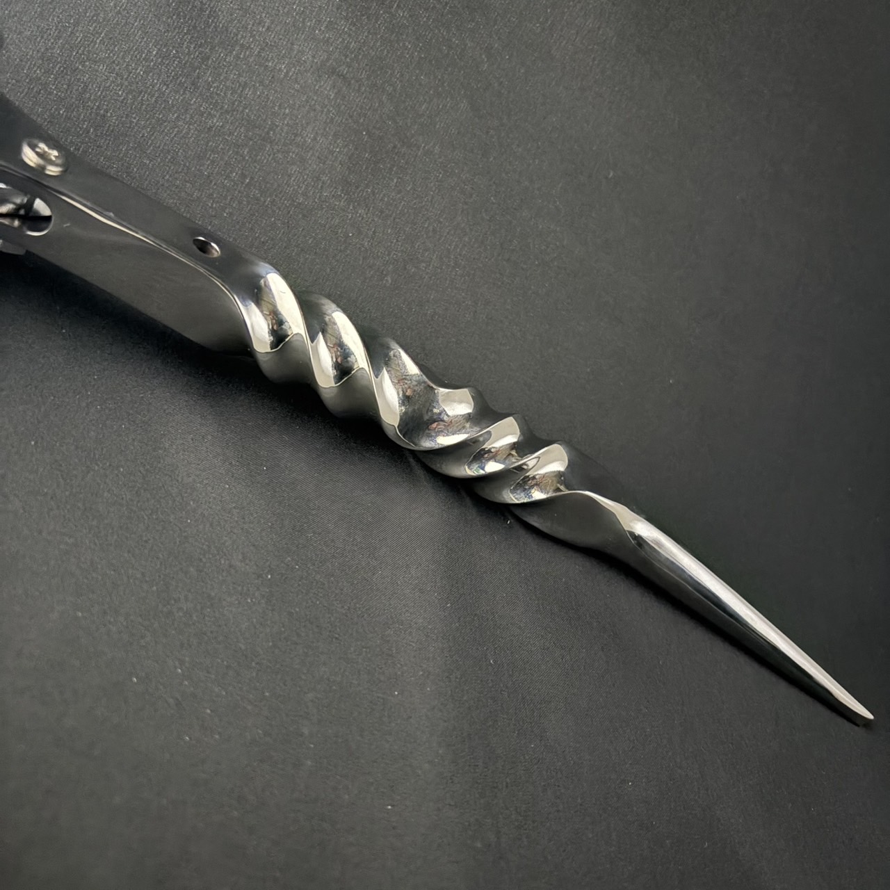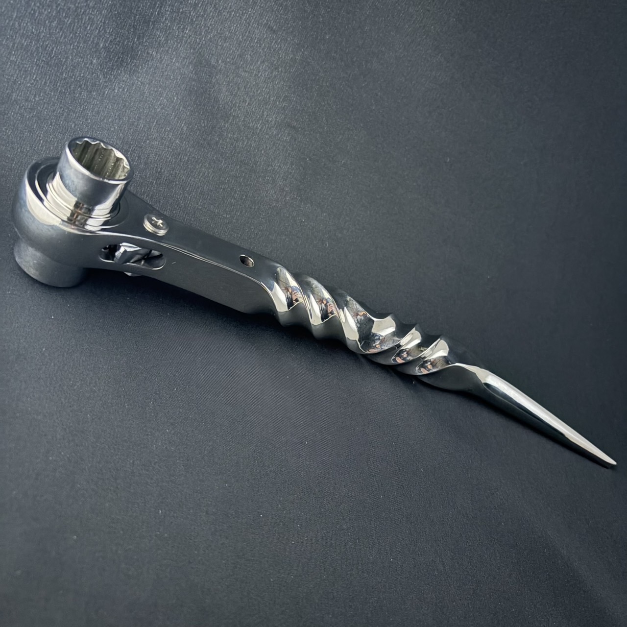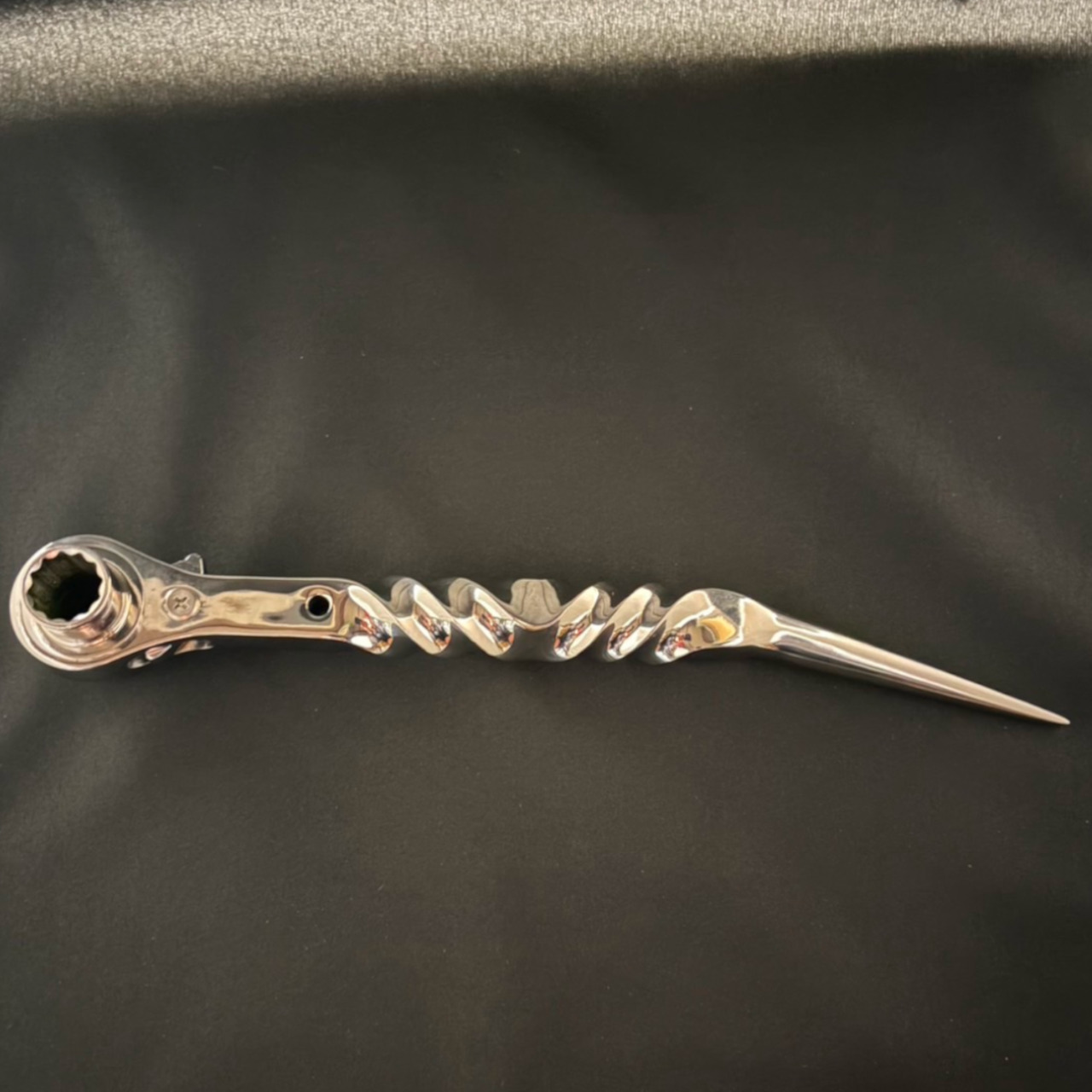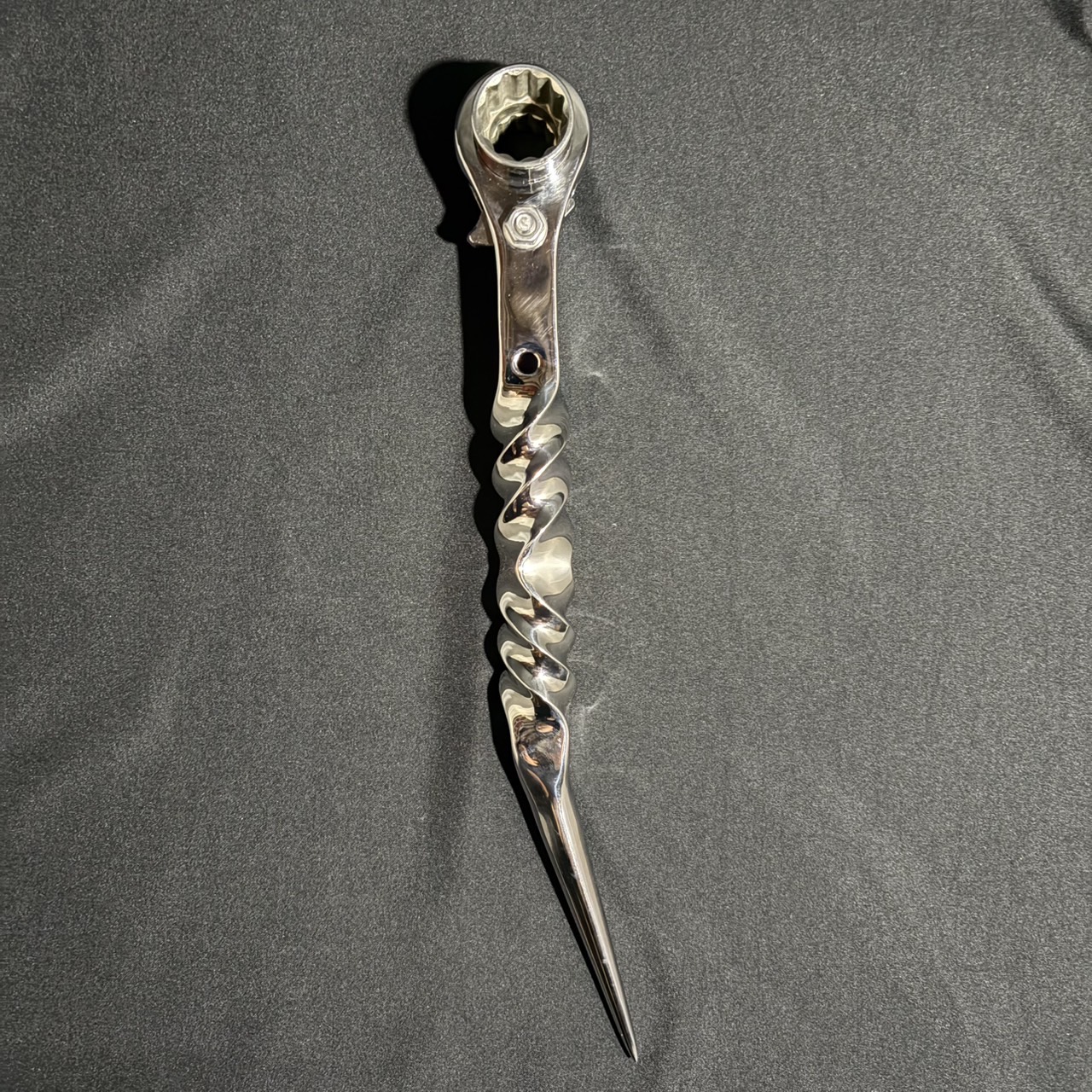 こちらのYS-RはSUS極太ラチェット17x21 シノ鳶仕様をツインツイスト(2回転ずつ逆方向に捻じっています)し仕上げてもらいました。(オールステン)