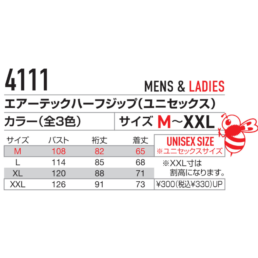 BURTLE 限定モデル ・伸縮性と保温性を兼備するダンボール断面構造のダブルニット素材 ・快適な着用感をサポート ・男女ユニセックス 素材:ポリエステル90%・ポリウレタン10% 新着商品 お勧め商品 バートル新商品&おすすめ 限定品 バートル エアーテックハーフジップ 4111シリーズ burtle-4111 ブラック:M 在庫有り ¥2,980(税込) 数量 ブラック:L 在庫有り ¥2,980(税込) 数量 ブラック:XL 在庫有り ¥2,980(税込) 数量 ブラック:XXL 在庫有り ¥3,190(税込) 数量 ピンク:M 在庫有り ¥2,980(税込) 数量 ピンク:L 在庫有り ¥2,980(税込) 数量 ピンク:XL 在庫有り ¥2,980(税込) 数量 ピンク:XXL 在庫有り ¥3,190(税込) 数量 ホワイト:M 在庫有り ¥2,980(税込) 数量 ホワイト:L 在庫有り ¥2,980(税込) 数量 ホワイト:XL 在庫有り ¥2,980(税込) 数量 ホワイト:XXL 在庫有り ¥3,190(税込) 数量 レビュー( 1 ) ユーザー 様 2026-01-14 ちょうど良い。暑くなればジップをおろせば涼しくなる。 バートルはシンプルでカッコよい ログインしてレビューを書く ログイン
